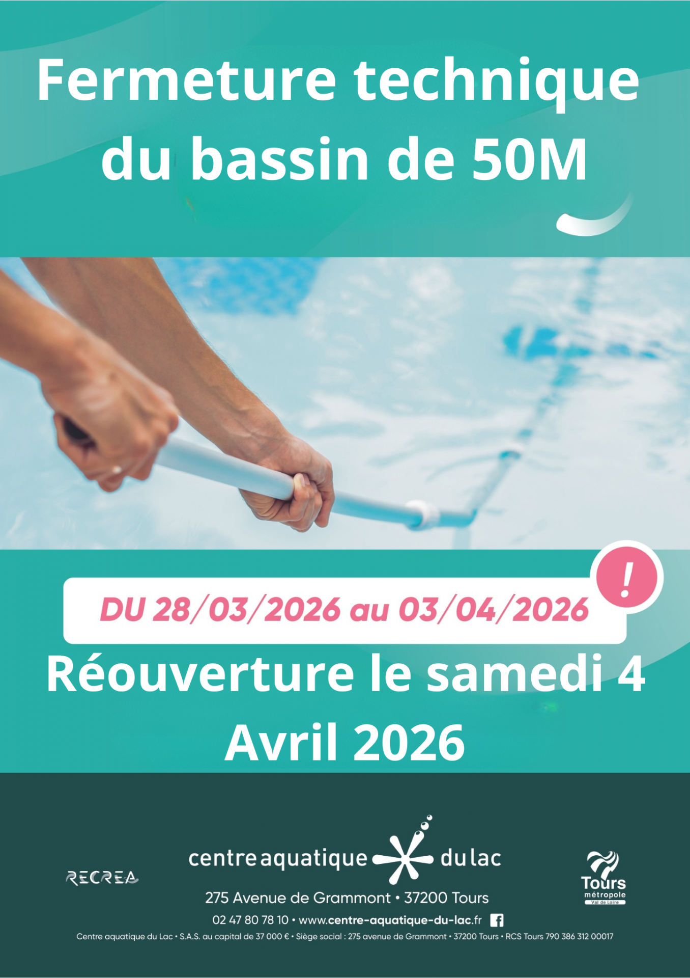 Bienvenue au Centre Aquatique du Lac à Tours !